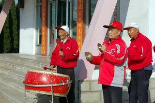 幸福公寓的老人們敲鑼打鼓歡迎鎮(zhèn)政府領(lǐng)導(dǎo)及金嶺人的到來(lái)
