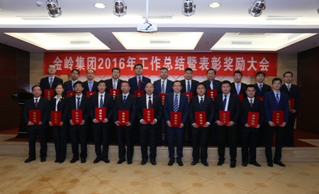 趙曰嶺在講話中指出,2016年,公司面對(duì)復(fù)雜嚴(yán)峻的國內(nèi)外經(jīng)濟(jì)形勢(shì),攻堅(jiān)克難,頑強(qiáng)拼搏,狠抓生產(chǎn)經(jīng)營,加快項(xiàng)目建設(shè),規(guī)范企業(yè)管理,推動(dòng)改革創(chuàng)新,做了大量卓有成效的工作,取得了生產(chǎn)經(jīng)營、安全環(huán)保、項(xiàng)目建設(shè)等各方面歷史最好的綜合成績(jī)。2017年是金嶺集團(tuán)發(fā)展史上承前啟后、繼往開來的一年,面對(duì)新的形勢(shì)、新的挑戰(zhàn)、新的征程,全體員工要以更加積極主動(dòng)的姿態(tài),更加昂揚(yáng)向上的精神,更加高效扎實(shí)的作風(fēng),振奮精神,鼓足干勁,積極作為,全力做好2017年各項(xiàng)工作,為金嶺集團(tuán)再次輝煌、持續(xù)繁榮、跨越發(fā)展而努力奮斗!
