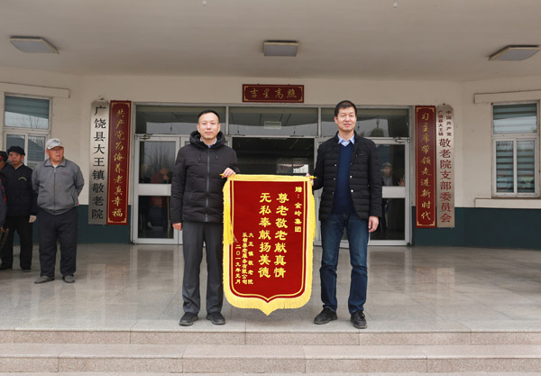 2019年1月30日,在中華民族傳統(tǒng)節(jié)日己亥豬年春節(jié)即將到來之際,金嶺集團總裁趙棟一行到大王鎮(zhèn)敬老院走訪慰問,為每位老人送去一份營養(yǎng)品新春愛心大禮包,以表達公司對老年人的關愛之情。大王鎮(zhèn)人大主席侯向斌、敬老院院長陳洪敏對公司多年來關注養(yǎng)老事業(yè)給予高度評價。