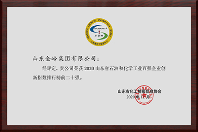 2020年12月16日,第十屆中國化工產(chǎn)學(xué)研高峰論壇在廣饒隆重召開,2020山東省石油和化學(xué)工業(yè)100強(qiáng)企業(yè)發(fā)布會同期舉行。在會上,中國化工情報(bào)信息協(xié)會、山東省化工情報(bào)信息協(xié)會、全國石油化工信息總站聯(lián)合發(fā)布了2020山東省石油和化學(xué)工業(yè)百強(qiáng)企業(yè)排名暨百強(qiáng)企業(yè)創(chuàng)新指數(shù),金嶺集團(tuán)位列2020山東省石油和化學(xué)工業(yè)100強(qiáng)企業(yè)第10名,并入圍2020山東省石油和化學(xué)工業(yè)百強(qiáng)企業(yè)創(chuàng)新指數(shù)排行榜前二十強(qiáng),位列第12名。