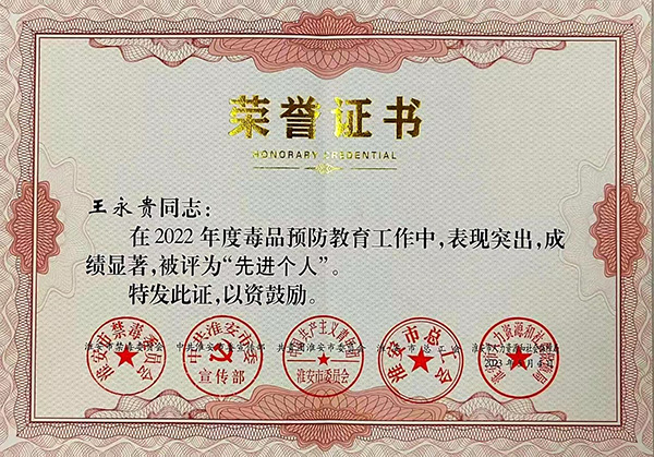 近日,集團(tuán)公司副總裁王永貴被淮安市禁毒委員會、中共淮安市委宣傳部、共青團(tuán)淮安市委、淮安市總工會、淮安市人力資源和社會保障局評為“2022年度毒品預(yù)防教育工作先進(jìn)個人”,受到通報表揚(yáng)。