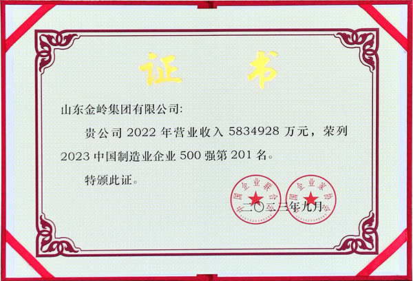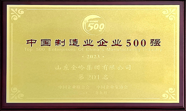 2023年9月,中國企業(yè)聯(lián)合會、中國企業(yè)家協(xié)會發(fā)布2023中國企業(yè)500強、2023中國制造業(yè)企業(yè)500強榜單,金嶺集團位列“2023中國企業(yè)500強”第391位,“2023中國制造業(yè)企業(yè)500強”第201位,公司已連續(xù)11年入圍中國企業(yè)500強。