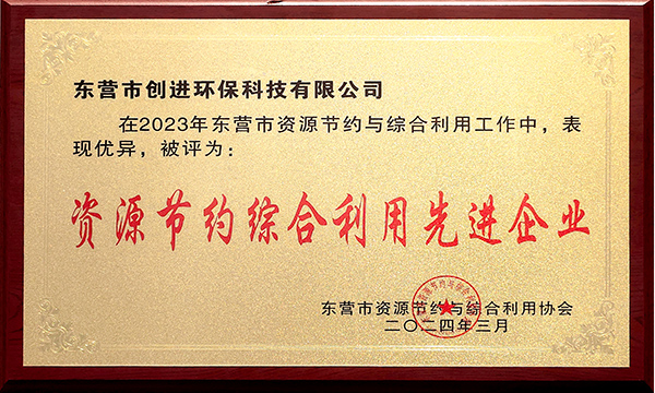 2024年3月31日,東營(yíng)市資源節(jié)約與綜合利用協(xié)會(huì)舉辦2024年度峰會(huì),本次峰會(huì)展示了2023年全市資源節(jié)約與綜合利用工作中各項(xiàng)創(chuàng)新成果,并表彰了在2023年工作中表現(xiàn)優(yōu)異的先進(jìn)企業(yè)和先進(jìn)個(gè)人,東營(yíng)市創(chuàng)進(jìn)環(huán)??萍加邢薰颈辉u(píng)為“資源節(jié)約綜合利用先進(jìn)企業(yè)”。