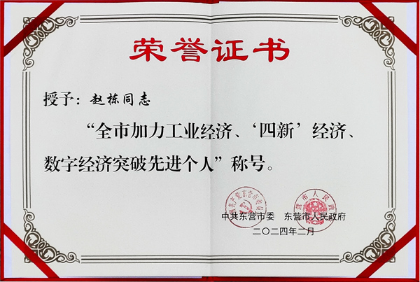 2024年2月20日,在東營市委、市政府召開的東營市2023年度綜合表彰暨高質(zhì)量招商引資項目建設(shè)大會上,山東金嶺集團有限公司被評為“東營市納稅突出貢獻企業(yè)”,總裁趙棟被授予“全市加力工業(yè)經(jīng)濟、‘四新’經(jīng)濟、數(shù)字經(jīng)濟突破先進個人”榮譽稱號,以表彰公司在復(fù)雜的經(jīng)濟形勢下,依法納稅、誠信經(jīng)營,對地方經(jīng)濟發(fā)展做出的突出貢獻。