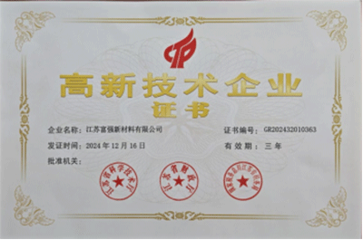 2025年2月18日,經(jīng)江蘇省科學(xué)技術(shù)廳、江蘇省財政廳、國家稅務(wù)總局江蘇省稅務(wù)局層層嚴格審核、多輪評估,江蘇富強新材料有限公司被評為高新技術(shù)企業(yè)。