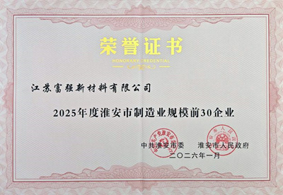 2026年1月5日,淮安市召開(kāi)全市經(jīng)濟(jì)工作及新型工業(yè)化推進(jìn)會(huì)議,江蘇富強(qiáng)新材料有限公司被評(píng)為“2025年度淮安市制造業(yè)規(guī)模前30企業(yè)”。