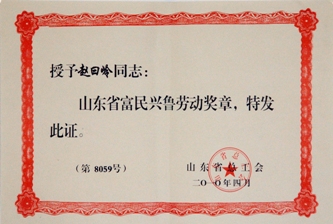 公司董事長趙曰嶺榮獲山東省富民興魯勞動獎?wù)?/strong>