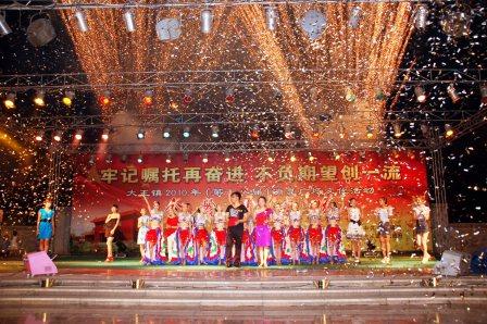 7月22日晚,公司在大王鎮(zhèn)文化廣場舉行了“金嶺專場”消夏文藝演出,為鎮(zhèn)區(qū)人民獻上了一道豐富的文化盛宴。晚會現(xiàn)場歌聲悠揚、舞姿翩躚,精彩的文藝節(jié)目令前來消夏的人們目不暇接。主持人活潑的主持風格和演員們時尚動感的演出使現(xiàn)場觀眾喝彩聲、掌聲不斷。晚會在帶給觀眾愉悅、舒暢心情的同時,借機對公司進行了大力宣傳。