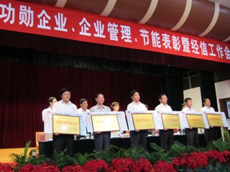 7月7日,市委市政府召開(kāi)全市功勛企業(yè)、企業(yè)管理、節(jié)能表彰暨經(jīng)信工作會(huì)議,在會(huì)議上,我公司被授予“首屆東營(yíng)市功勛企業(yè)”、“東營(yíng)市節(jié)能先進(jìn)企業(yè)”榮譽(yù)稱號(hào),受到大會(huì)表彰獎(jiǎng)勵(lì)。