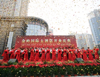 日,金嶺國際大酒店廣場彩旗招展,鑼鼓喧天,花團錦簇,熱鬧非凡。